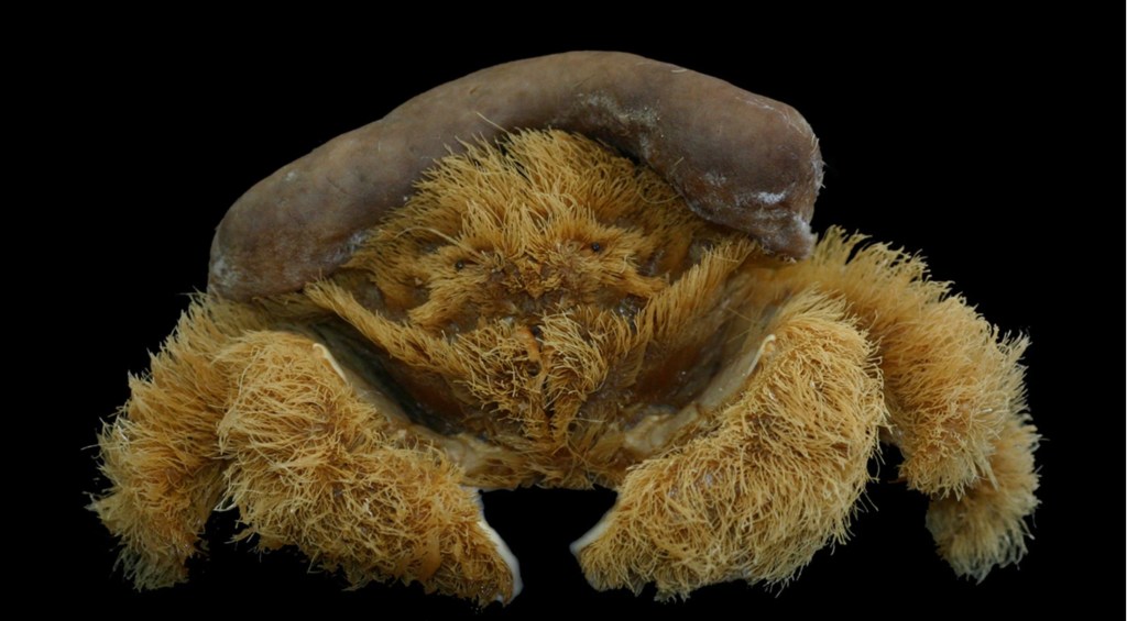 Now you may be thinking, this is a very stylish crab, and you’d be half right because that is a stylish crab and sea sponge acting as a beret. That’s right, this arthropod’s accessory is a living sea sponge, usually one that gives off toxins creating a barrier of protection for this fuzzy crab! Sponges and sometimes sea squirts are held in place by tiny pincers on the back legs of the crab. Enchanté monsieur crab!